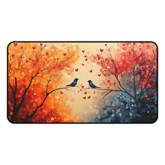 Romantic Birds Autumn Desk Mat, Cozy Home Office Decor, Lovebirds Mouse Pad, Nature Inspired Gift, Fall Aesthetic Workspace