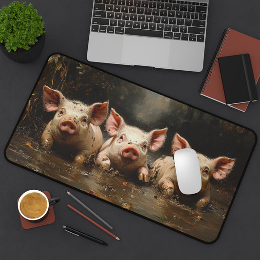 Three little Piggies Desk Mat - Cute Farm Animal Mat for Home Office, Gift for Animal Lovers, Unique Desk Accessories, Cute Desk Decor, Fun