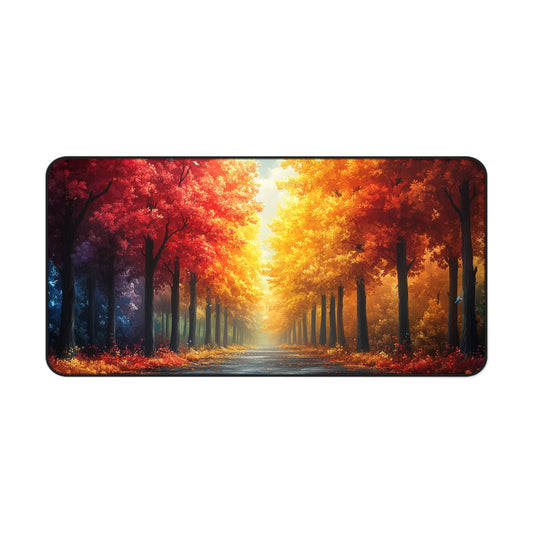 Autumn Forest Desk Mat, Cozy Office Decor, Aesthetic Mouse Pad, Nature Lover Gift, Fall Themed Workspace