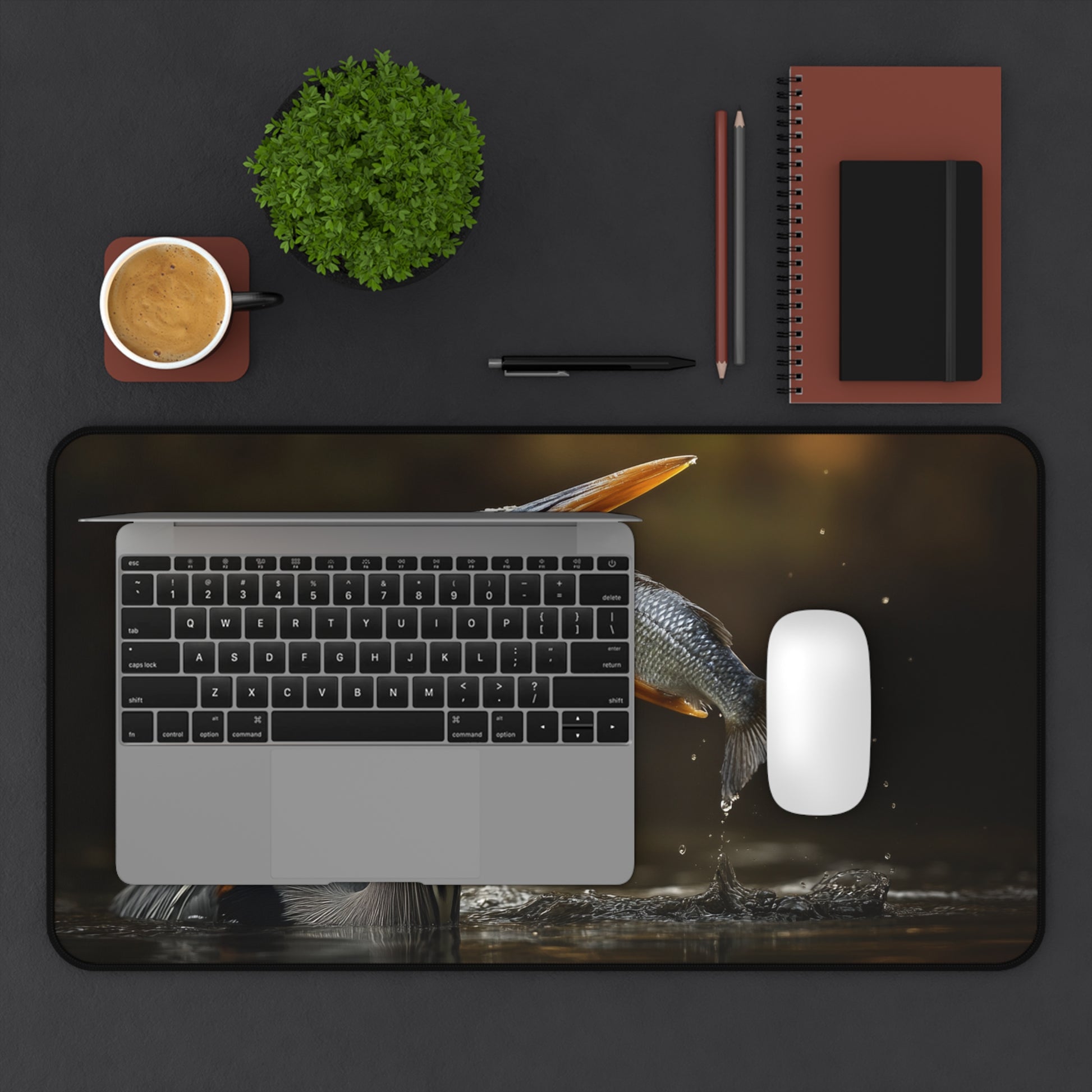 heron eating fish desk mat, Wildlife Desk Pad, Office Decor, Gift for Nature Lovers, Eco-Friendly Desk Accessory